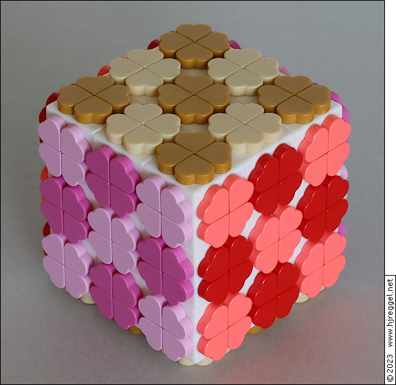 The 1×1 Heart Tile is a funny element. For a Brickermod, the hearts can be arranged as a group of four on a Cubie Face.